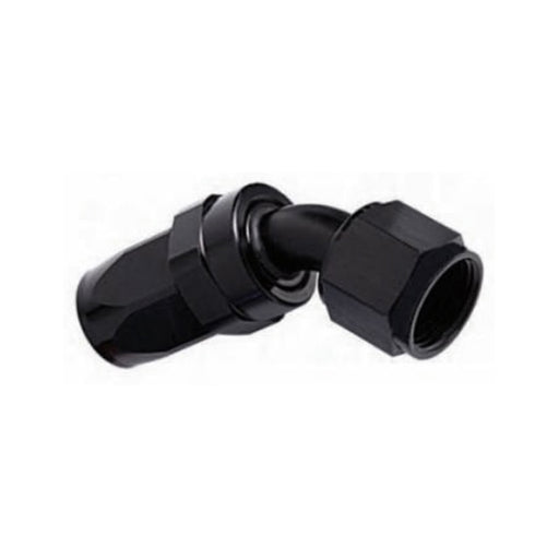 -8AN Female 45° Hose End, Swivel Style, Black Hard Anodized Aluminum