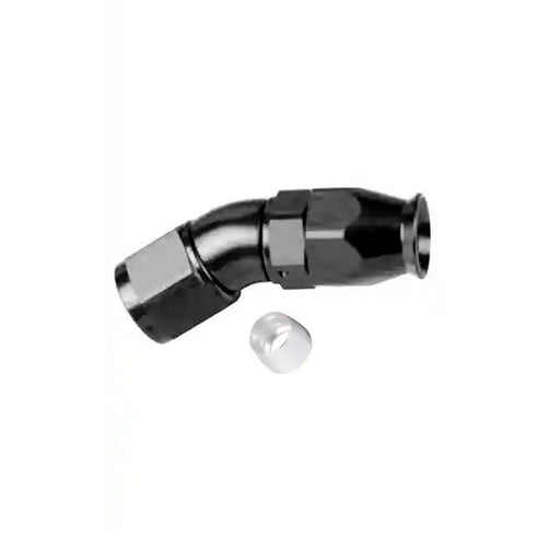 View full details-6AN Full Flow 45° Hose End (for PTFE Hose), Swivel Style, Black Hard Anodized Aluminum