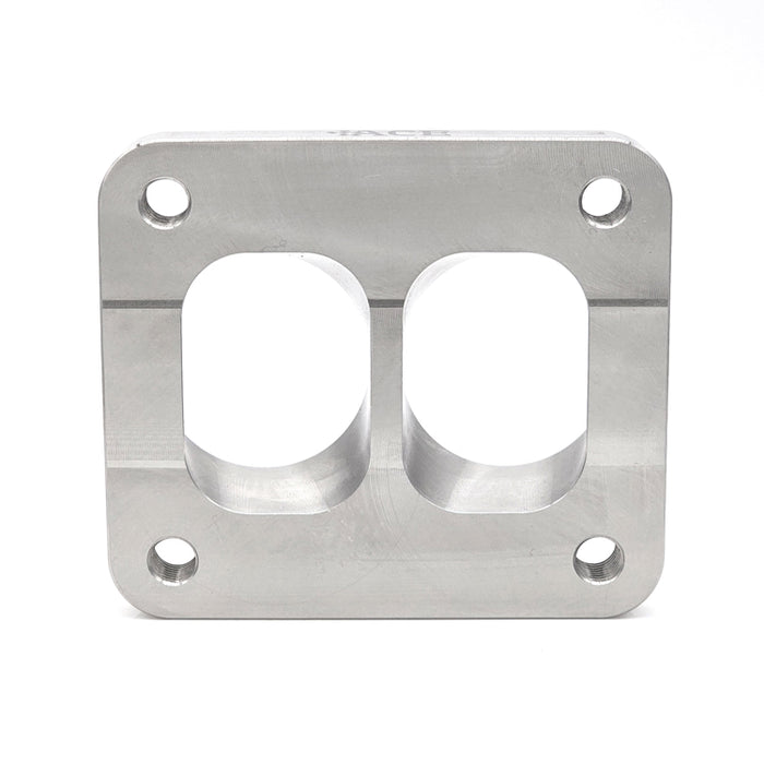 This Divided T4 Turbo Inlet Flange has a 3.250" x 2.750" bolt pattern and is compatible with the following applications: Generic T4 Undivided Turbine Inlets. Please be sure to verify the bolt pattern of your existing application before purchasing this Undivided T4 Turbine Inlet Flange.